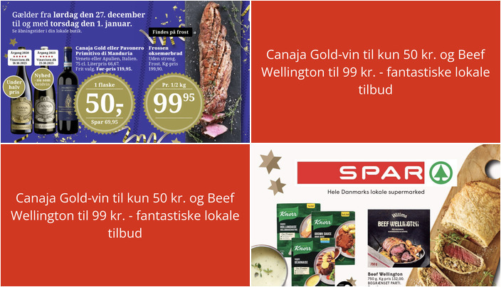 Hos Spar kan du få en lækker Beef Wellington på 750 g til kun 99 kr. pr. stk. Dette tilbud er dog kun tilgængeligt i et begrænset parti, så skynd dig at få fat i det, mens det stadig er på hylderne. Tilbuddet gælder fra lørdag den 27. december til onsdag den 31. december.